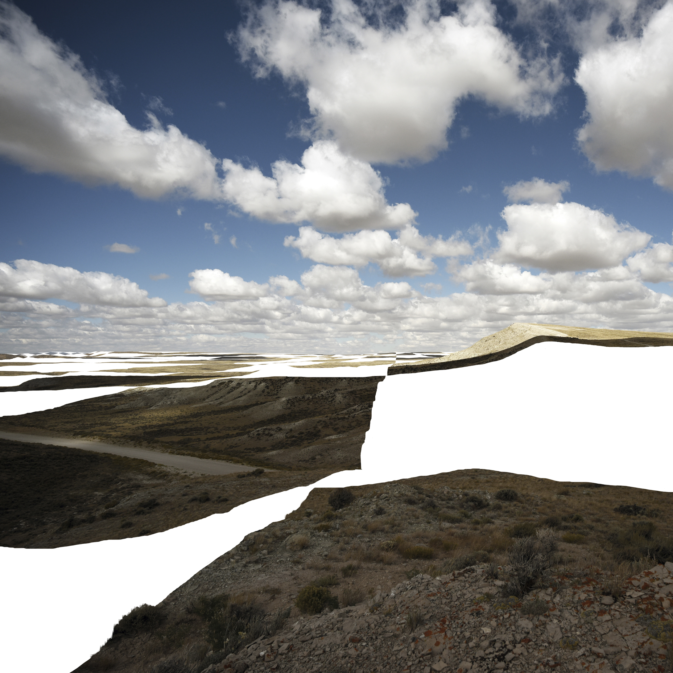 The site of the diorama is made of this cocktail. As we approached the site we entered on a public road and as we got deeper into the Sage Creek Basin we could feel the landscape lining up to the image that we remembered from the diorama back in New York. At the moment that it felt as if each individual landform is just setting into place we were interrupted by a gate. The fence was relatively invisible: thin spindly barbed wire that visually dissolved into the pale yellow grasses and soil. The gate on the other hand was made of dark green bent tubing. It looked new and had presence. In the hush of an empty landscape, it gently told us that we were not going any further unless we planned to slip into the ambiguous legal territory of checkerboard land-use. We checked the lock. It was locked. We look back at my rental car, a dark blue Volkswagen Passat that was as alien out here as we were. It barely had the turning radius or ground clearance to reverse course but it nudged over the ruts as I pulled it off-road. The feeling of defeat at the gate was the same feeling I had a few weeks before when I had called the Overland Trail and Cattle Company, the company listed on the sign of the bent tube gate. The first question I asked when I called the cattle company was so endearingly naive of Wyoming land culture. I was on the roof of my building at work, the only place I can get some privacy.